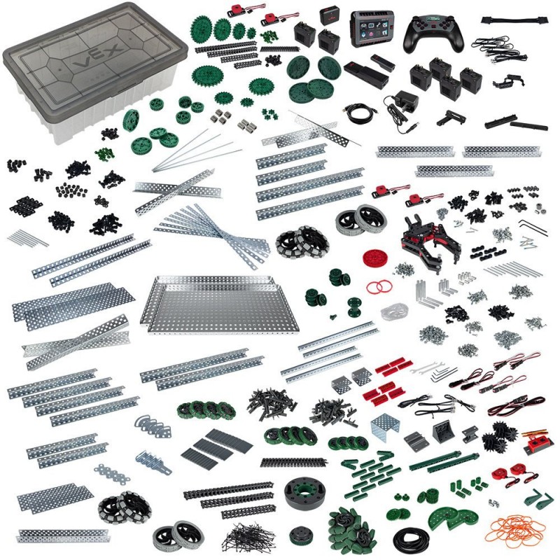 This kit contains over 1,500 components, including 1 set V5 system bundle, 6 V5 Smart Motors, 1 vision sensors, 4 bumper switches, 45 steel structure pieces, 610 motion parts, plus all of the necessary hardware, tools, and accessories! Once you've mastered the basics, this kit provides everything needed to move on to more advanced engineering concepts using some of our most popular motion add-on kits. We've included the Linear Motion Kit, Advanced Mechanics and Motion Kit, and the Turntable Bearing Kit. At the end of the day, organise your parts with our reusable storage bin.